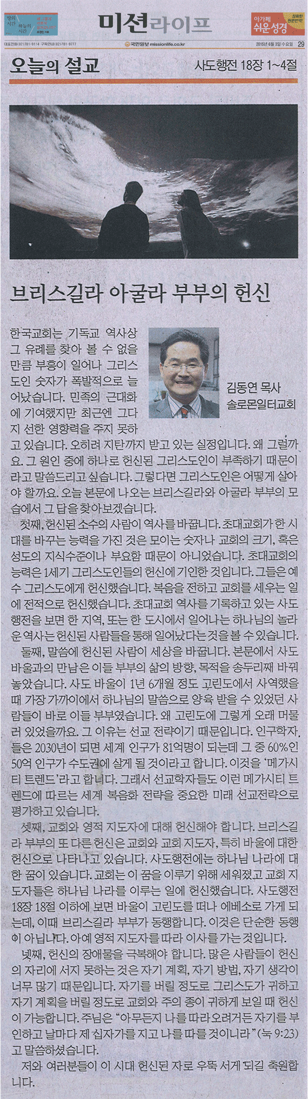 [±¹¹ÎÀϺ¸ ¹Ì¼Ç¶óÀÌÇÁ]¿À´ÃÀÇ ¼³±³ "ºê¸®½º±æ¶ó ¾Æ±¼¶ó ºÎºÎÀÇ Çå½Å"